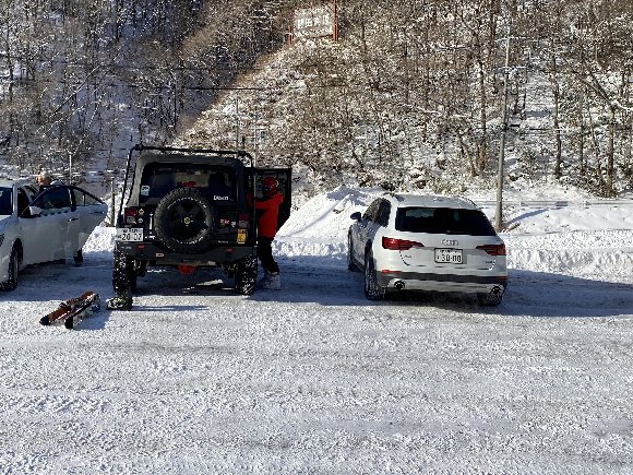 ![]() 道路も駐車場も雪 |