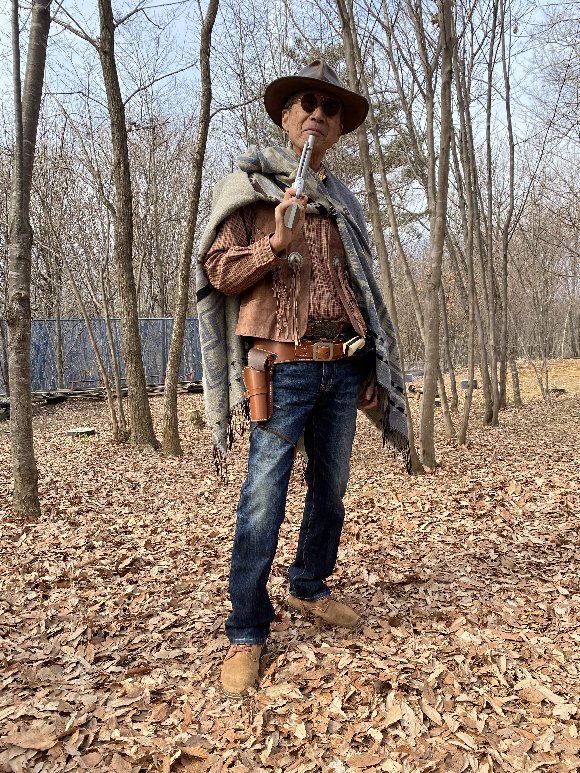 ![]() 革コートで チャールズ・ブロンソン風 |
