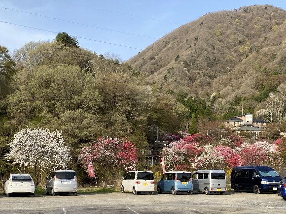老神温泉の花桃は もう遅いと 思っていたが 駐車場や 川沿いに 見事に咲き誇っていた。