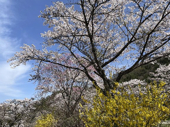 行ってみたら、桜は散っているが 場所により ソメイヨシノ 枝垂れ桜 駒つなぎの桜 など 満開