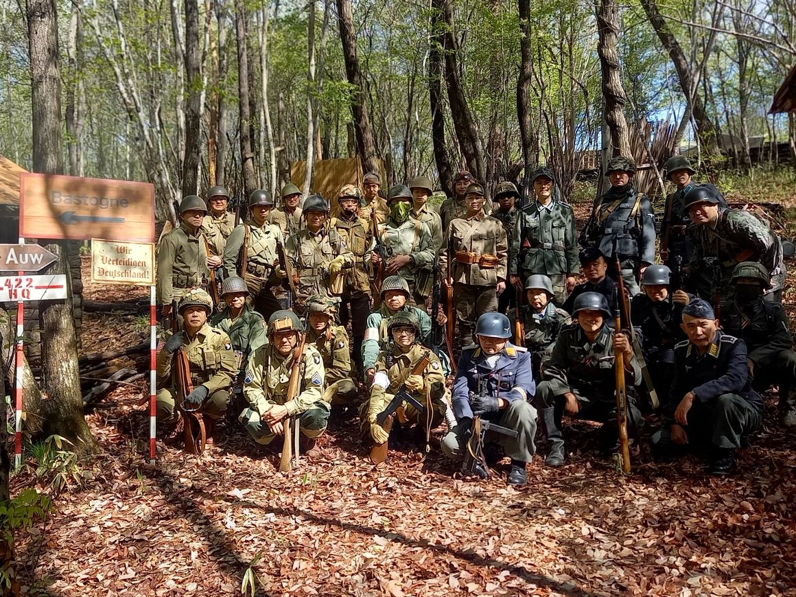 ![]() 朝は寒かったので、 M41ジャケットに M43ジャケットの重ね着 |