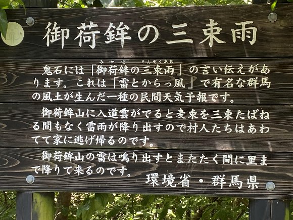 「御荷鉾の三束雨」 の言い伝えの 説明版があった。