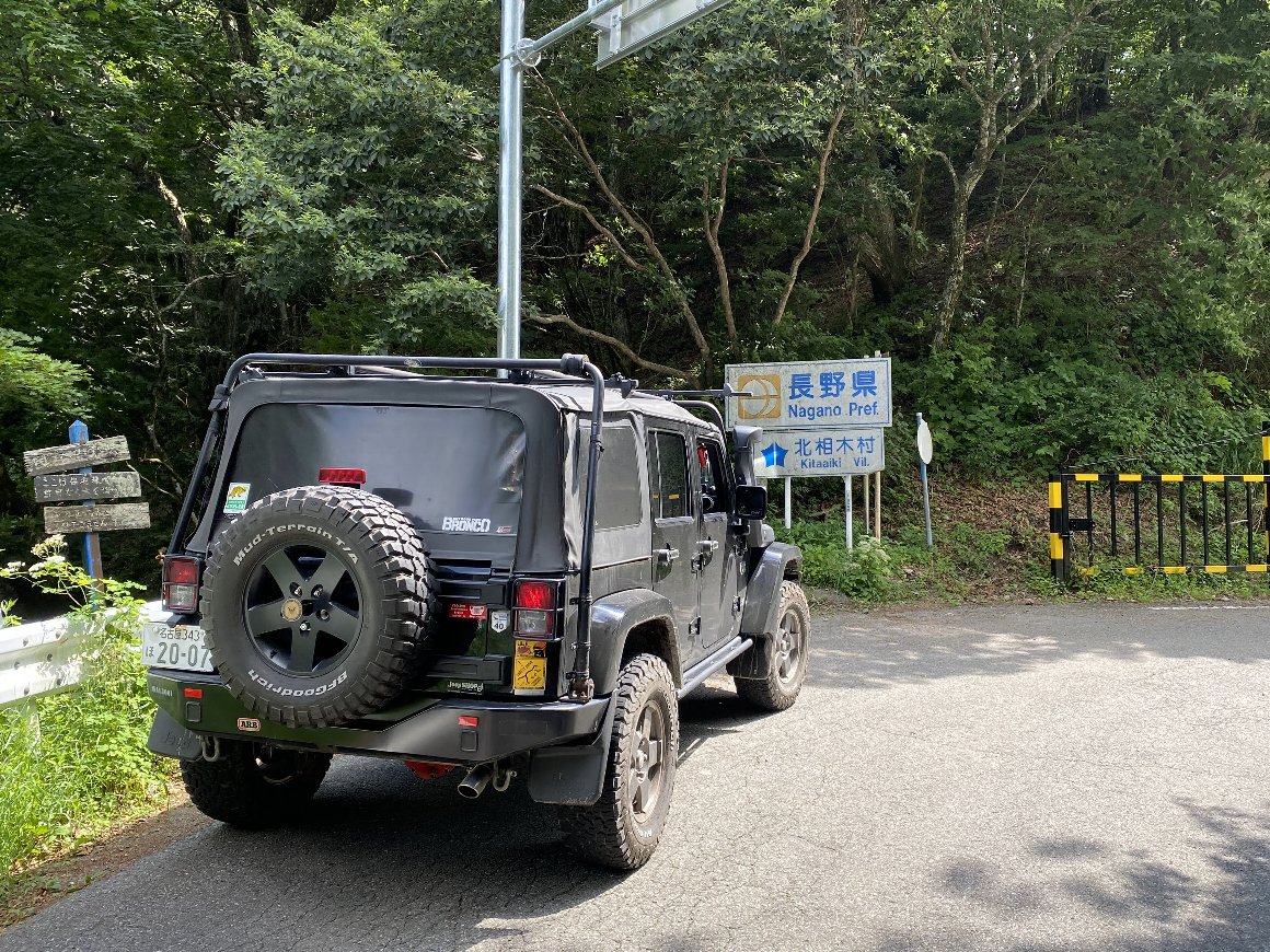 細い、曲がりくねった坂道を延々と登っていくと 長野県の看板が