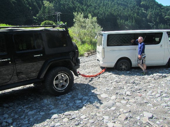 青橋上の川原に 車を回送・・・・・ おっと! ハイエースがスタック! |