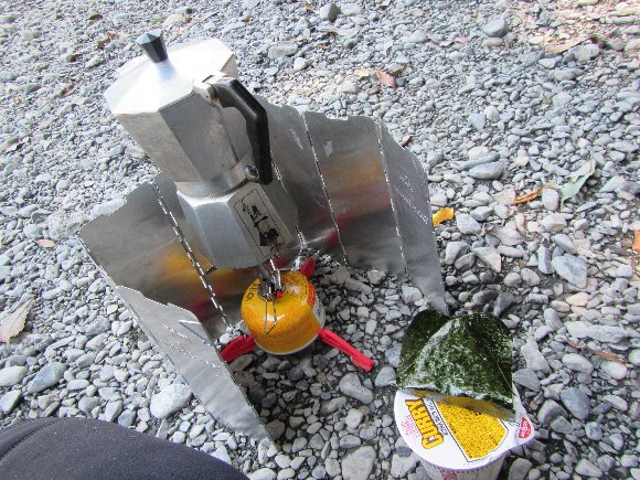 笹合の手前、 日陰で ランチ