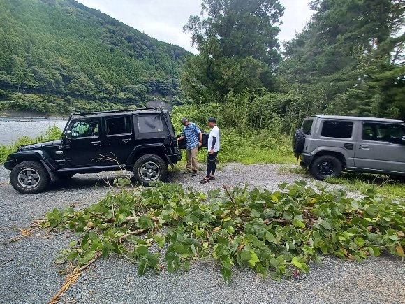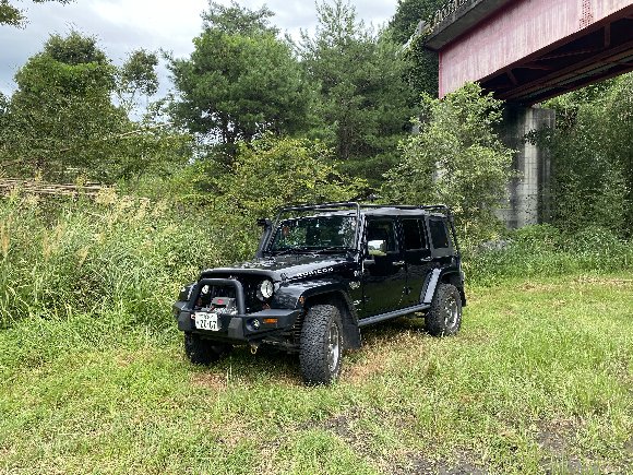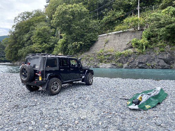 ![]() 青部の川原に ジムニーを置き