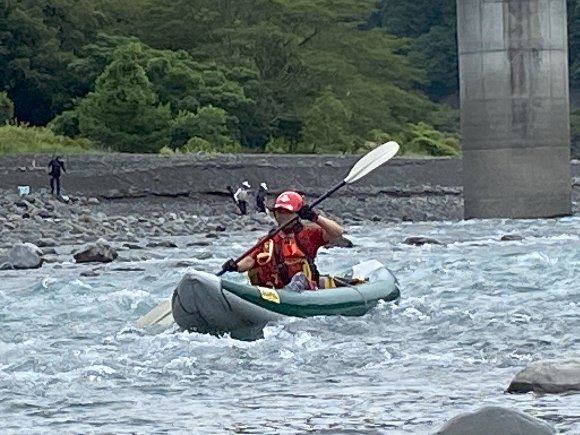 ![]() 瀬を漕ぐ ヤマちゃん 艇はヤマネコU号