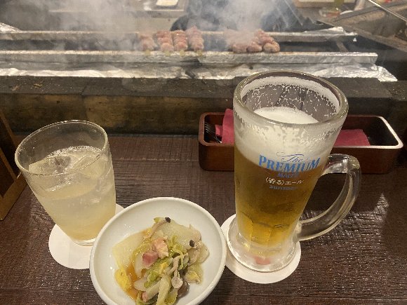 夕食は、近くの 居酒屋 すみかまど茅野店で 焼き鳥 生ビール モヒート
