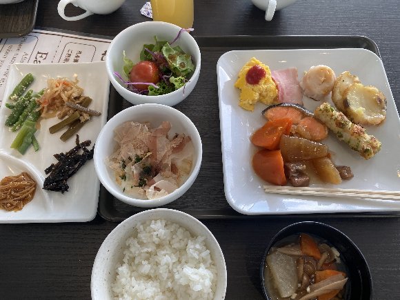 翌朝 朝風呂の後 朝食