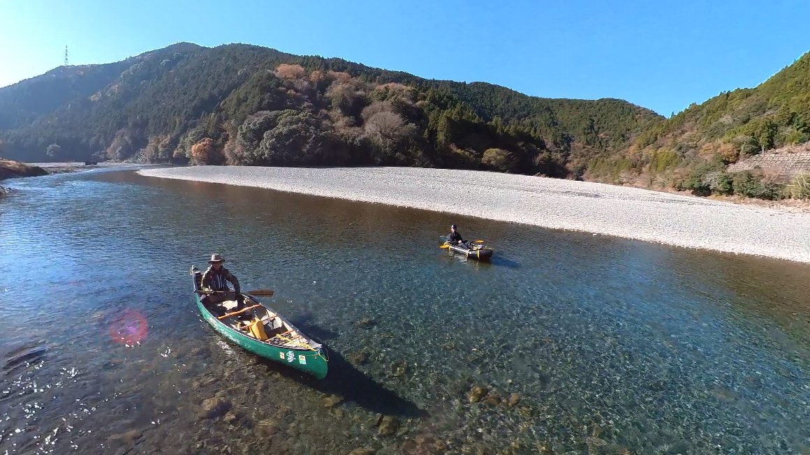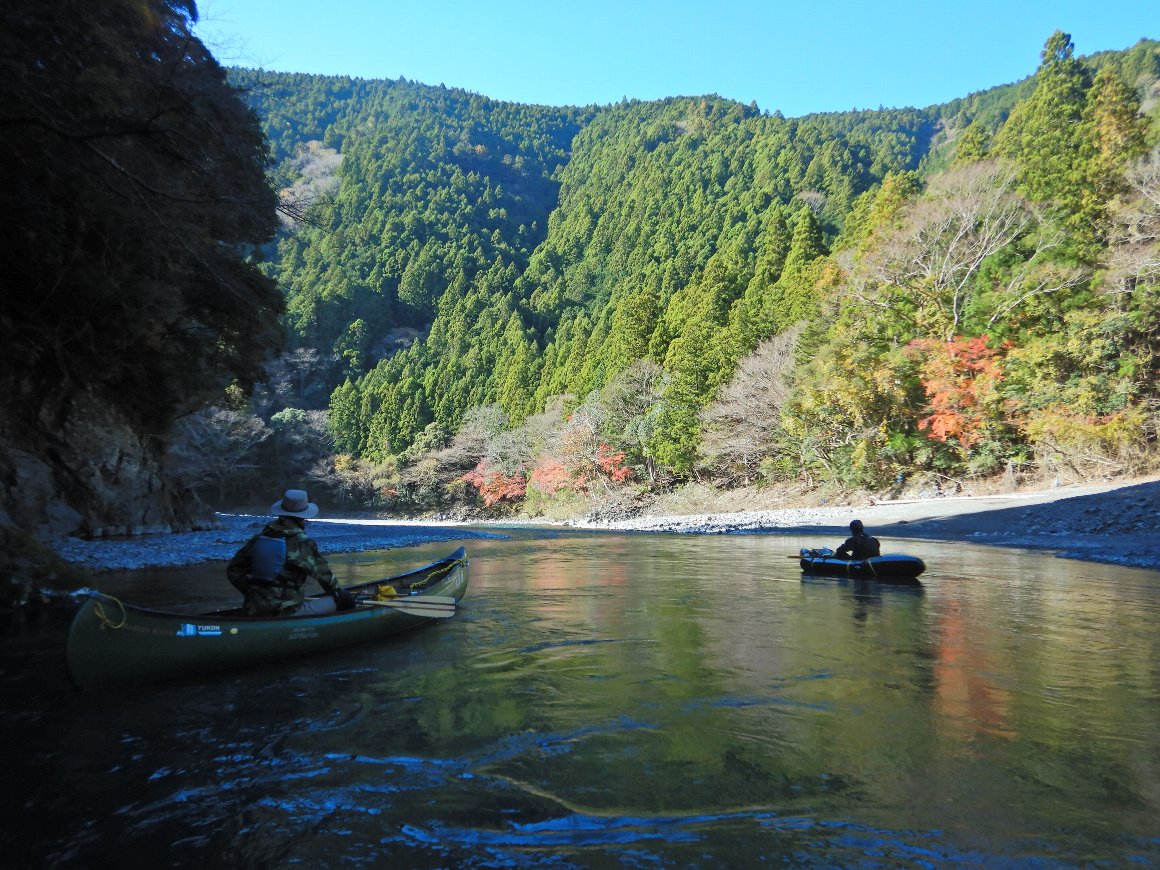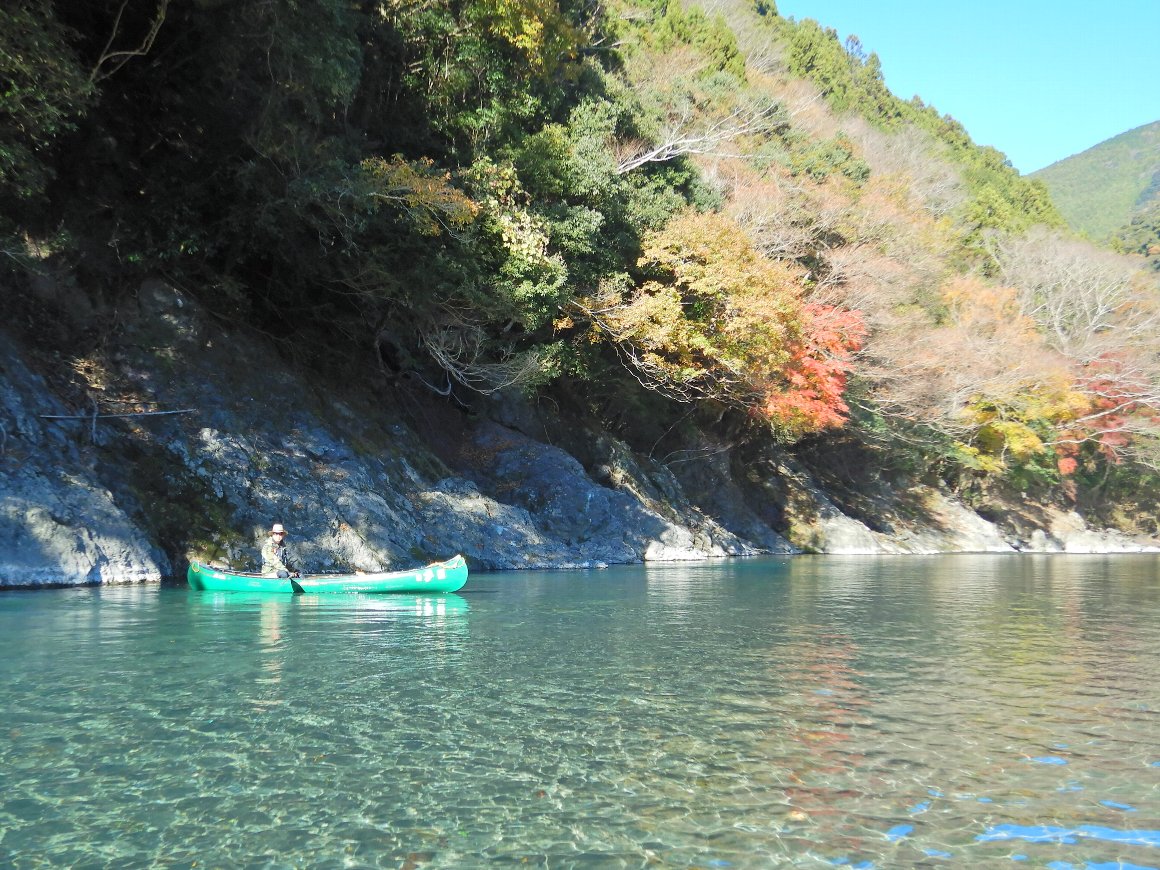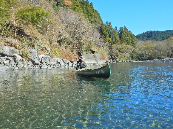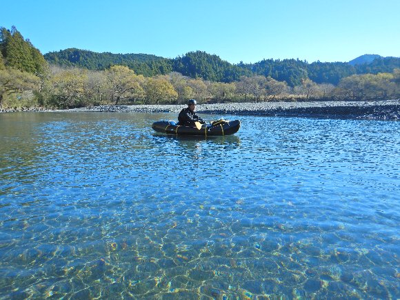 この時期、水を浴びたくはないので 波のない おだやかな 気田川でと