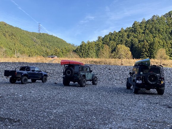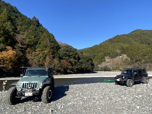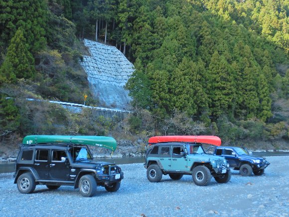 下社前川原の下流部へ ラングラー2台で移動