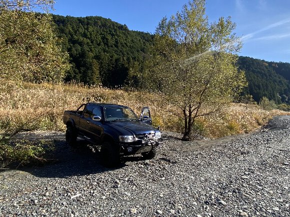青橋 上の川原へ KAZさんのハイラックスを置き