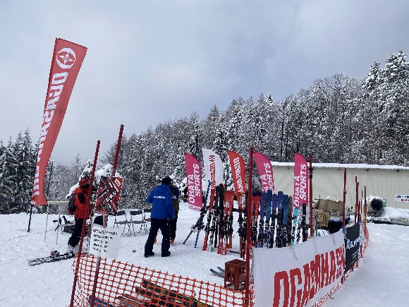 ![]() スキー板 試乗会を やっていたので 挨拶、 はるカミも 試乗する |