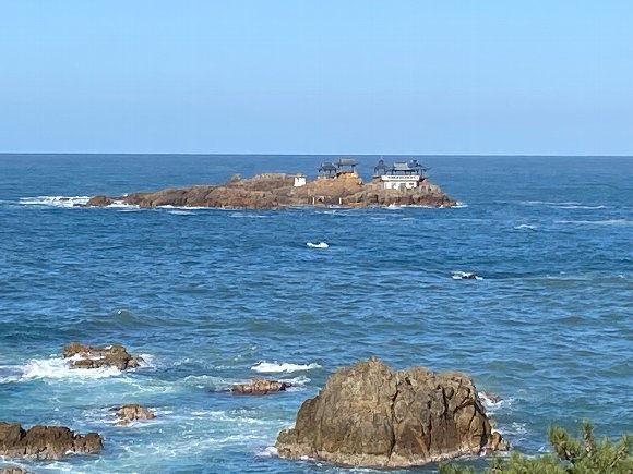 玄武洞の ガイドの お姉さんに 勧められた きれいな景色の 日和山海岸へ
