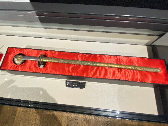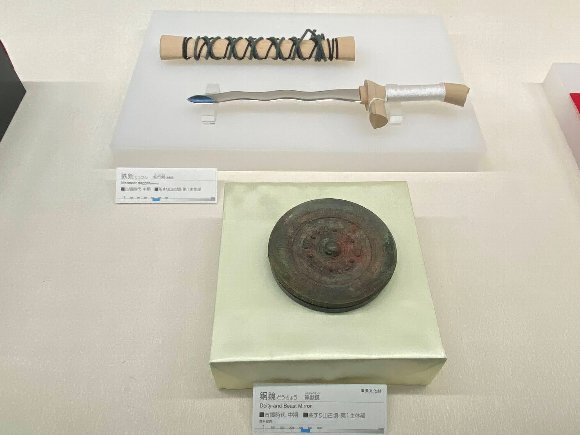 ![]() 蛇行剣 (レプリカ) と 銅鏡 (重要文化財) |