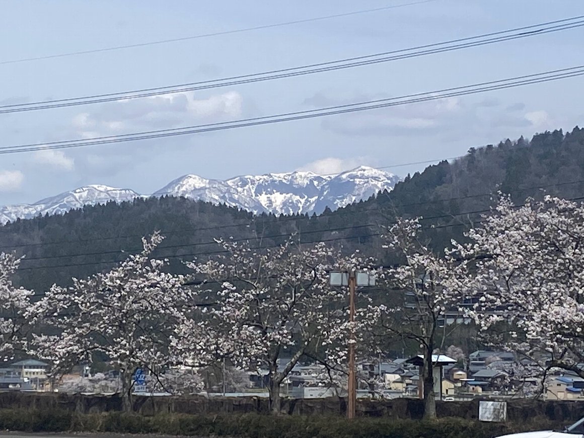 ![]() ホテルから 雪山と 桜並木 |