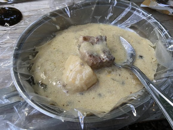 ![]() 配食された 夕食は 具だくさんの クリームシチュー 美味かった! |