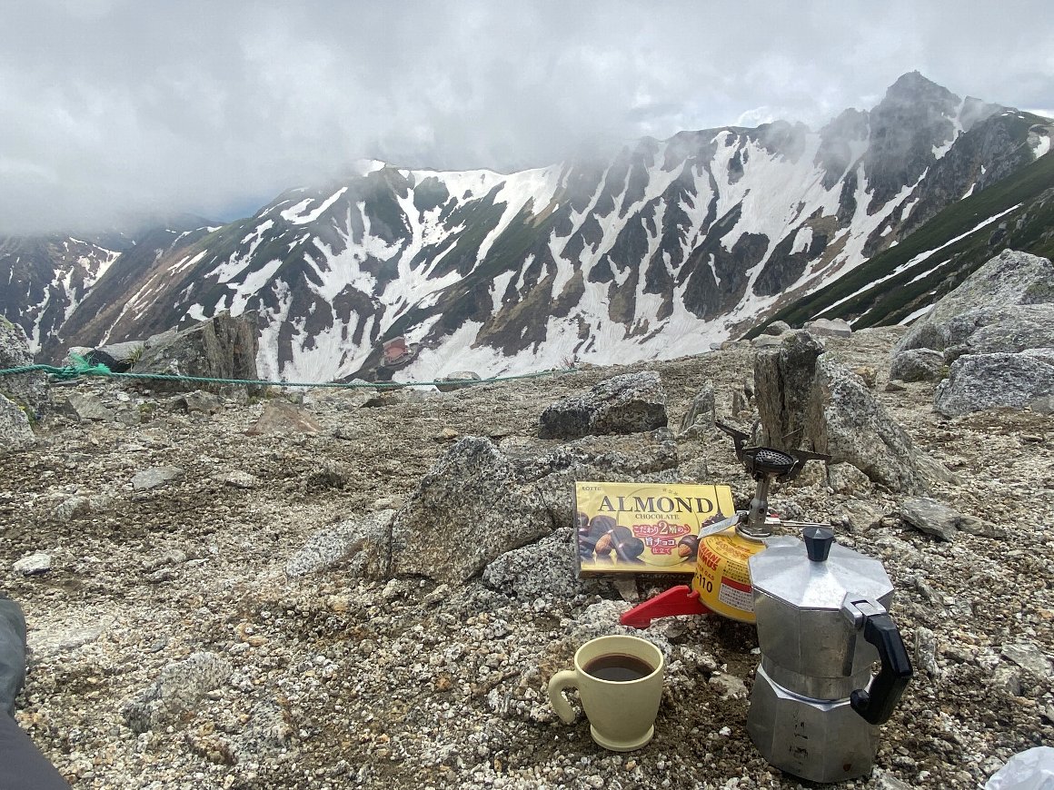 ![]() ガスも晴れてきた 伊那前岳山頂で エスプレッソ珈琲 |