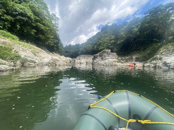 1人艇は 小回りが効き、 瀬でバウンドが大きく 楽しい |