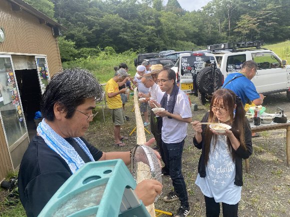 何と、それから 流しソーメンが 始まった。 私を待ってくれていたのだ。 のもあり 昼は、直射日光で暑すぎで、時間をずらした との事