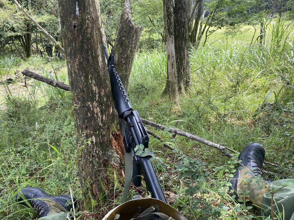 ![]() 使用GUNは、 We-Tec M16A1ガスブローバック 20連リアルカウントマガジンを 6個携帯 (これ重い) 2個のキャンティーンに 水(薄めのポカリ)満杯 (これも重い)