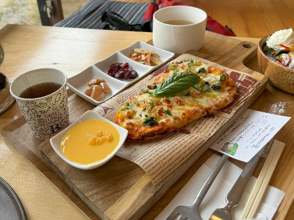 ![]() 白駒荘でランチ もちもちナンピザ |