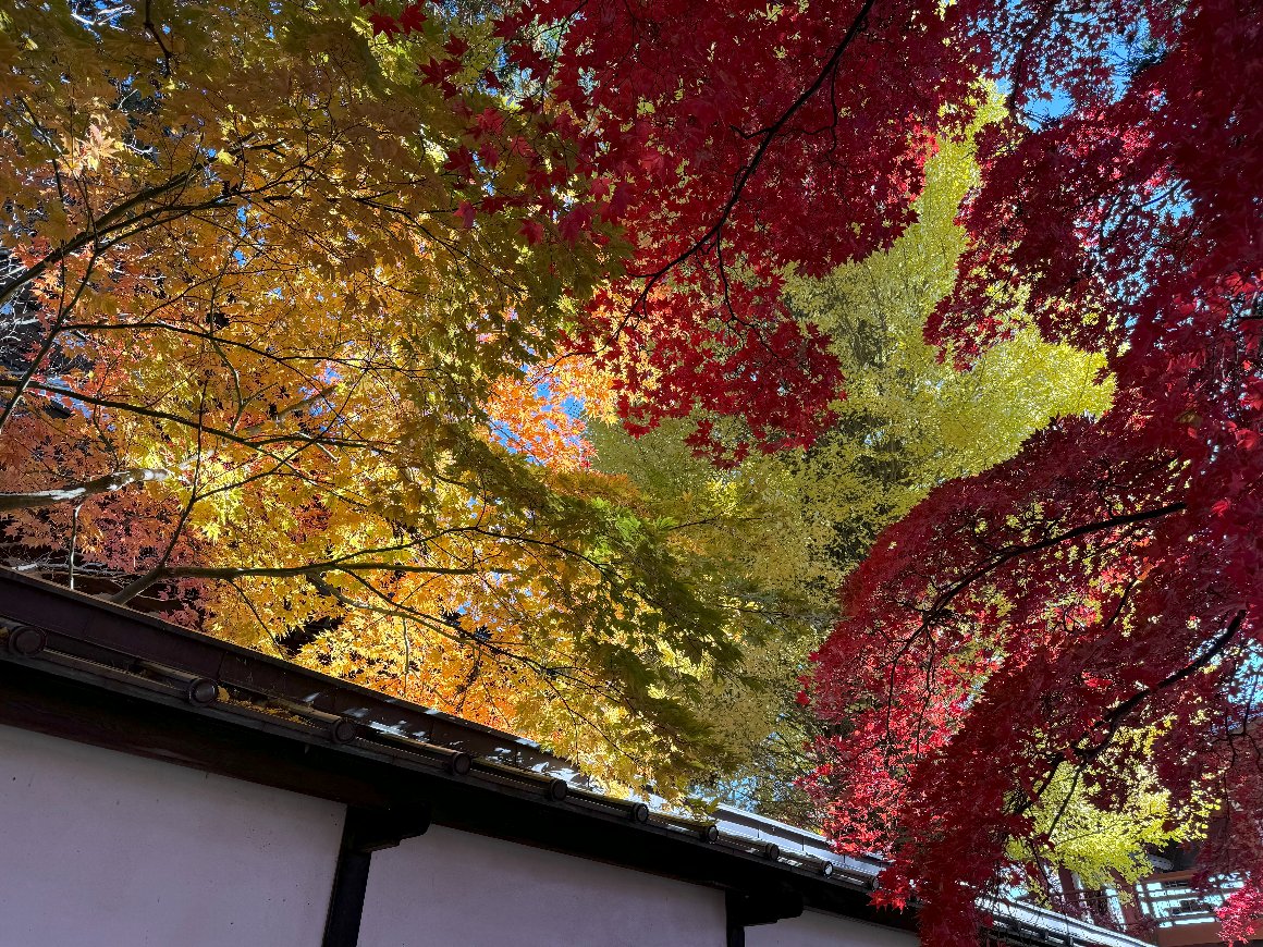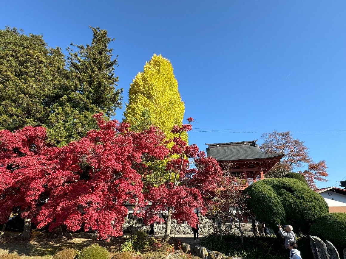 11月13日 長圓寺 赤と黄色、緑と 真っ青な空