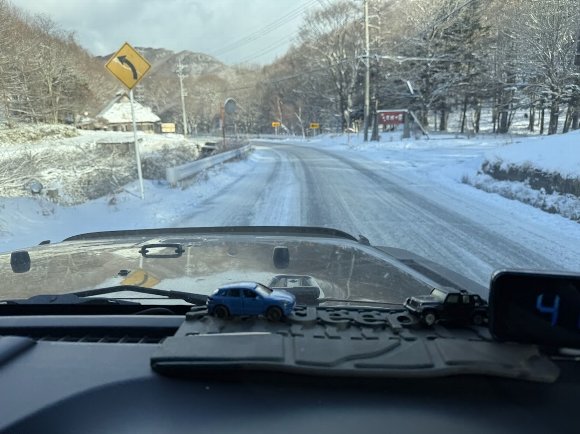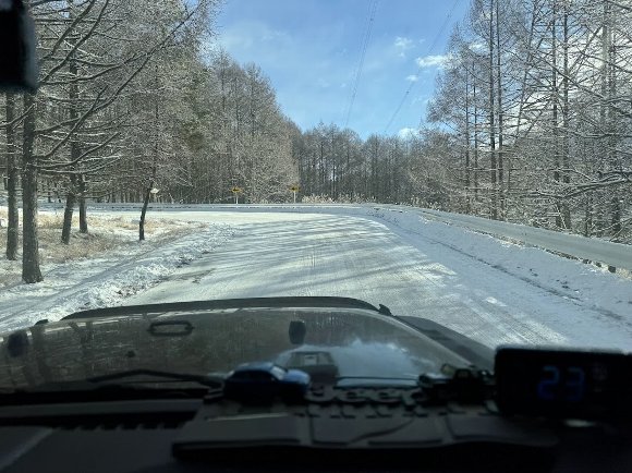 ![]() 白樺湖を越えると 雪道に |