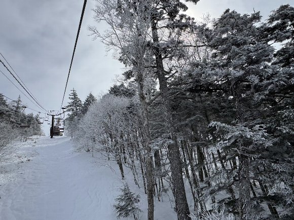 ![]() リフト沿い 霧氷がきれい |
