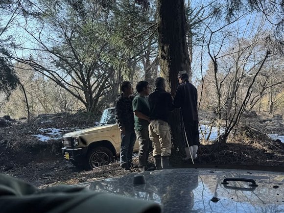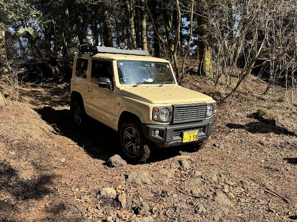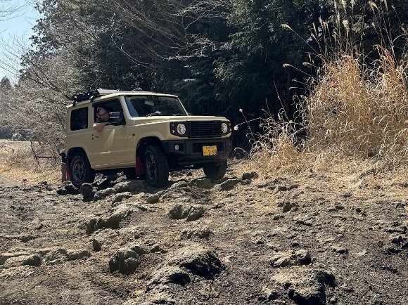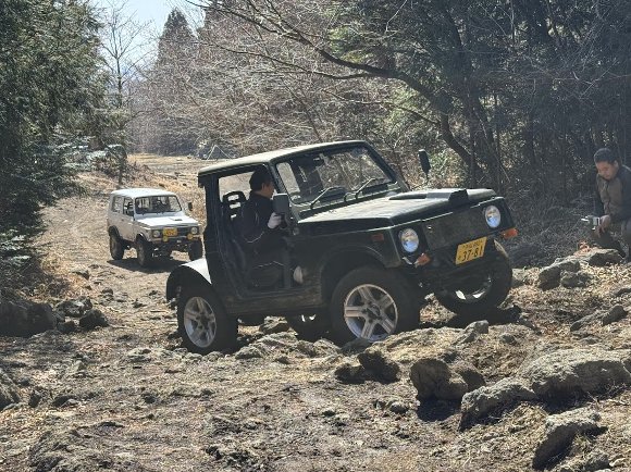 午後、コースを走る ジムニーなどを 徒歩で 見学