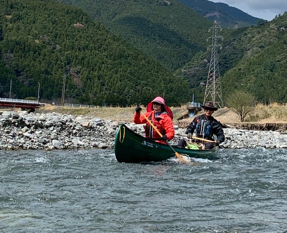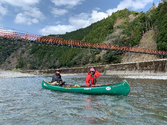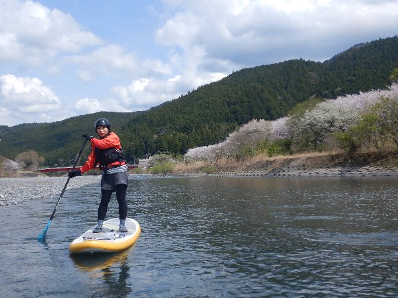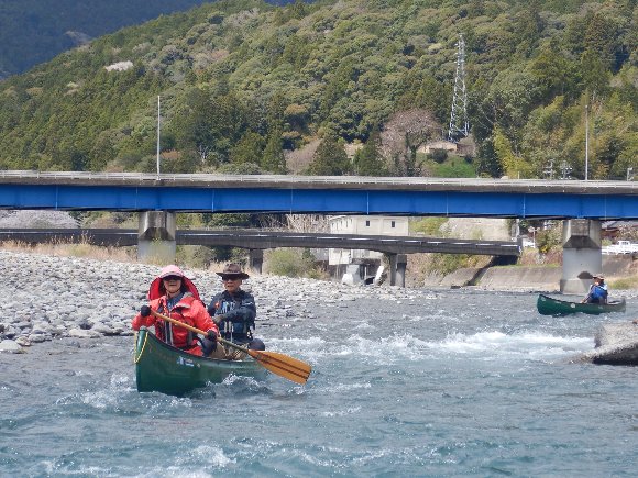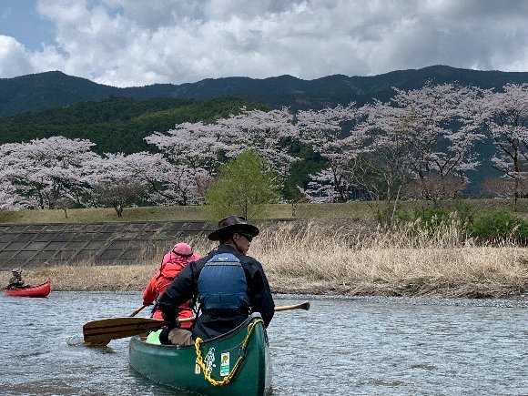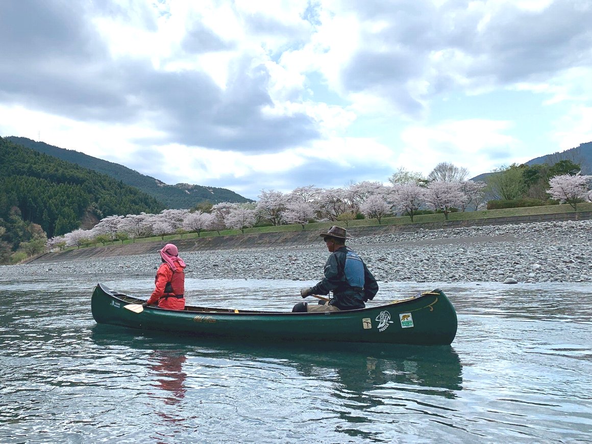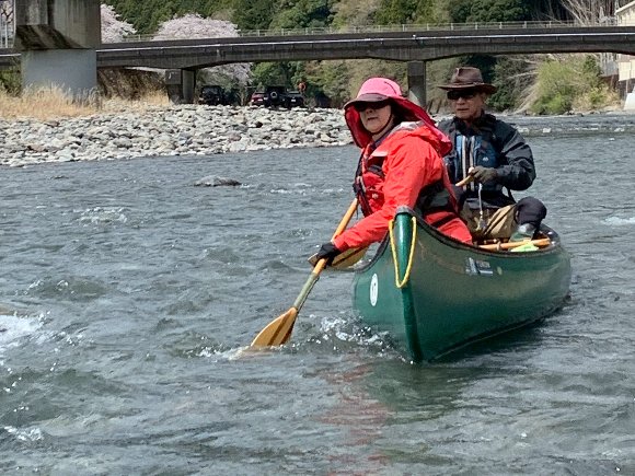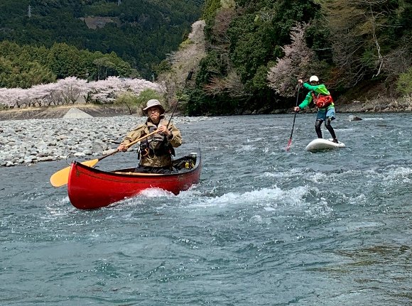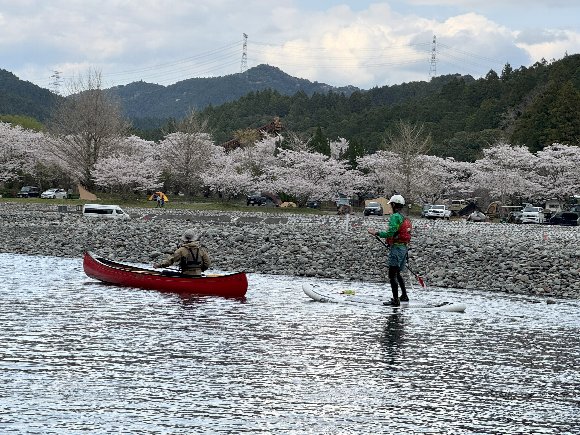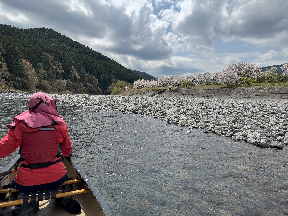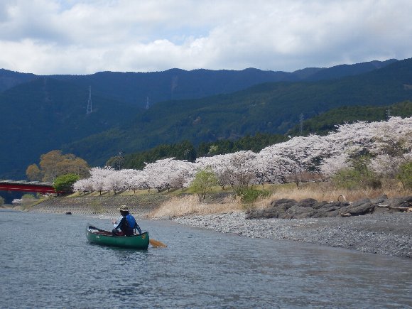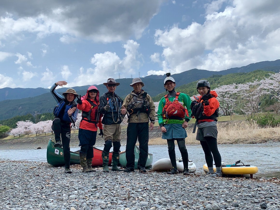 Teruさんの誘いで 気田川 カヌーで 花見
