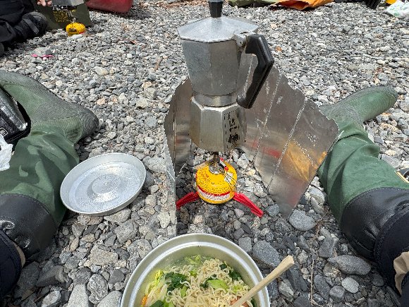 気田川橋の下で準備 |