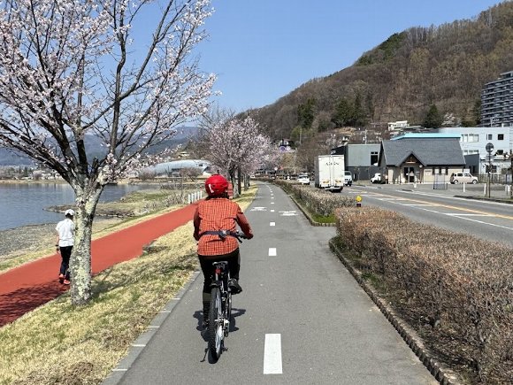 天気も良く、風もなさそうなので 諏訪湖サイクリングロードへ