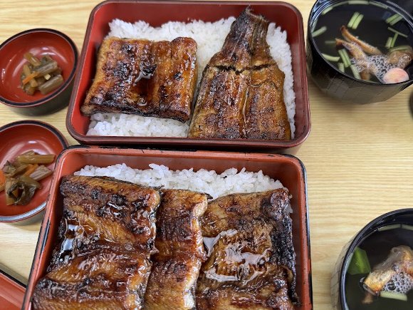 おにぎりは 夕食用にして カロリー高い 岡谷の ウナギを 食べよう!