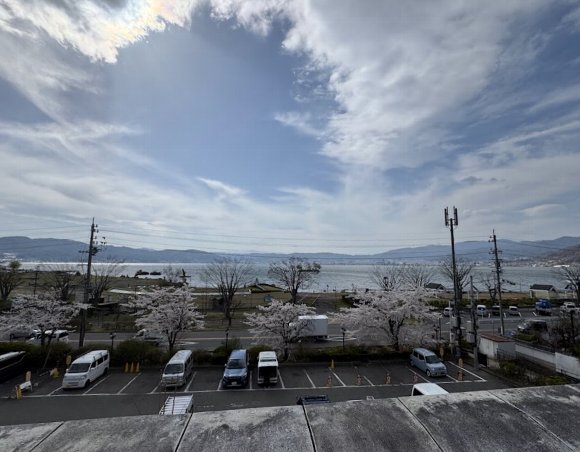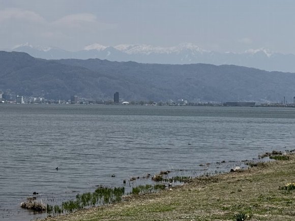 ![]() 霞んでいるが 諏訪湖の向こうに八ヶ岳 |
