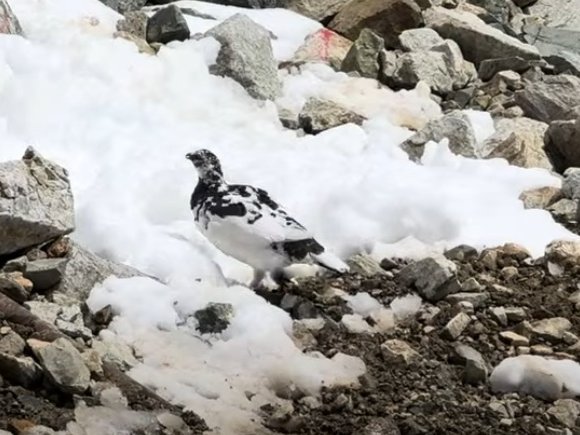 山荘の部屋の窓から見えた 雷鳥の散歩