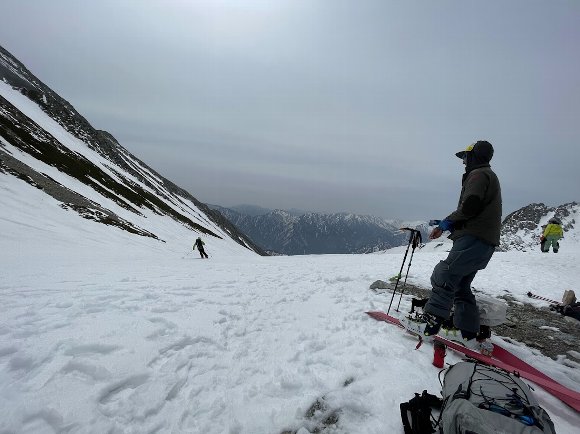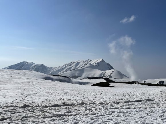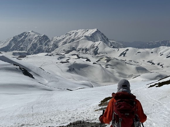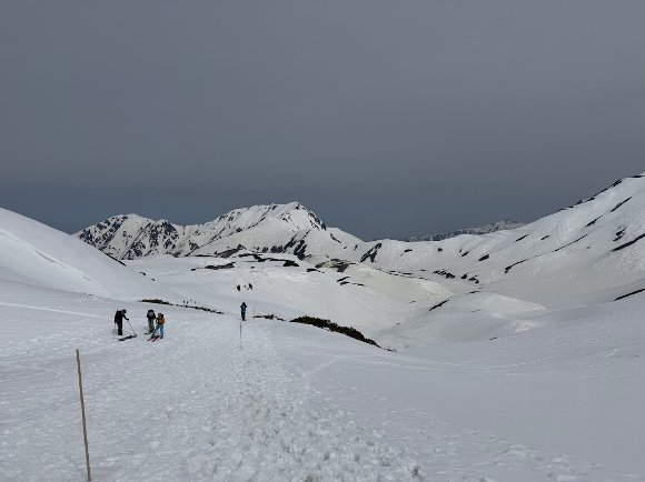 ![]() 振り返ると室堂平 スキーヤーも登ってくる |