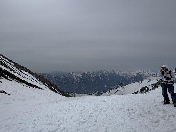 ![]() 一ノ越からの展望 曇っているが 槍ケ岳が 霞んで見えた |