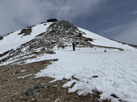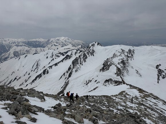 ![]() 振り返ると 雪 よ 岩よ の登山道 |