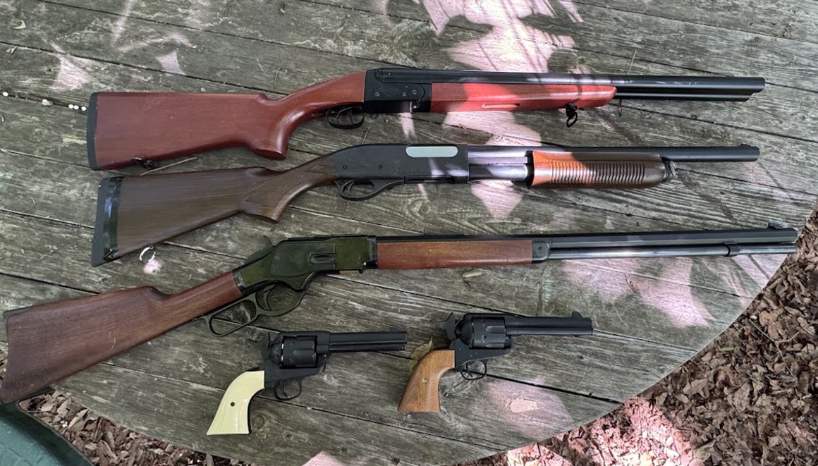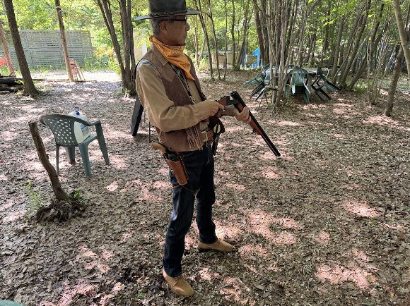 使用GUN 水平2連ショットガン(TAIWAN製 改装ガスカート式) レミントン M870ショットガン(東京マルイ・ガスガン) ウィンチェスターM1873ライフル(K.T.W. エアガン) コルトS.A.A. マルシン・カート式 と タナカ・ペガサス ガスガン |