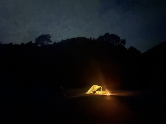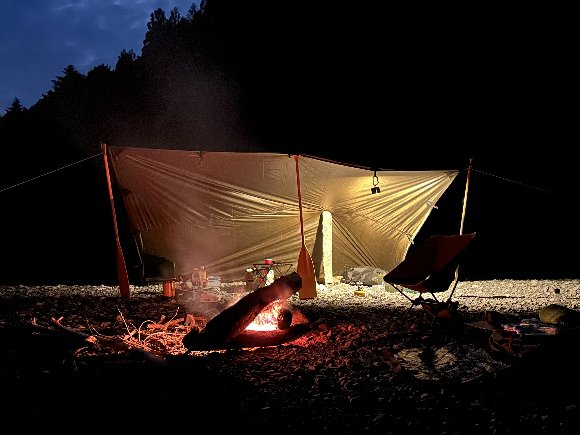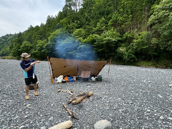 千頭の河原から スタート 昼前に キャンプ地に到着