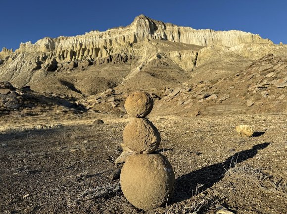 ![]() 2段の丸い石を 3段積みに してみた |