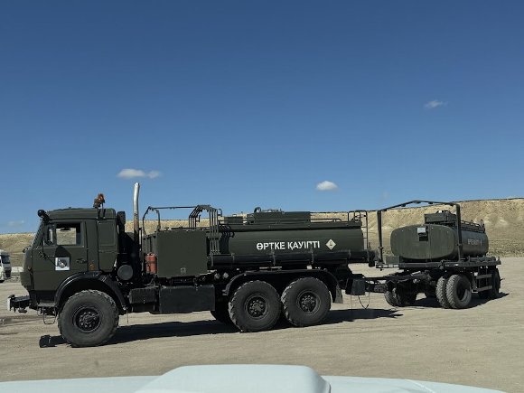 ![]() レストランの前に駐車した 軍用トラック 給水車の様だ |