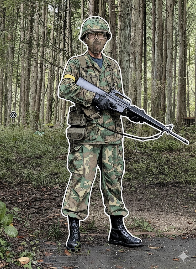 ナム戦装備で行き、 ブーツは 先週使った、ジャングルブーツは 1960年製 で ヒブラムパターン だが ソールが硬化し 滑りやすいので