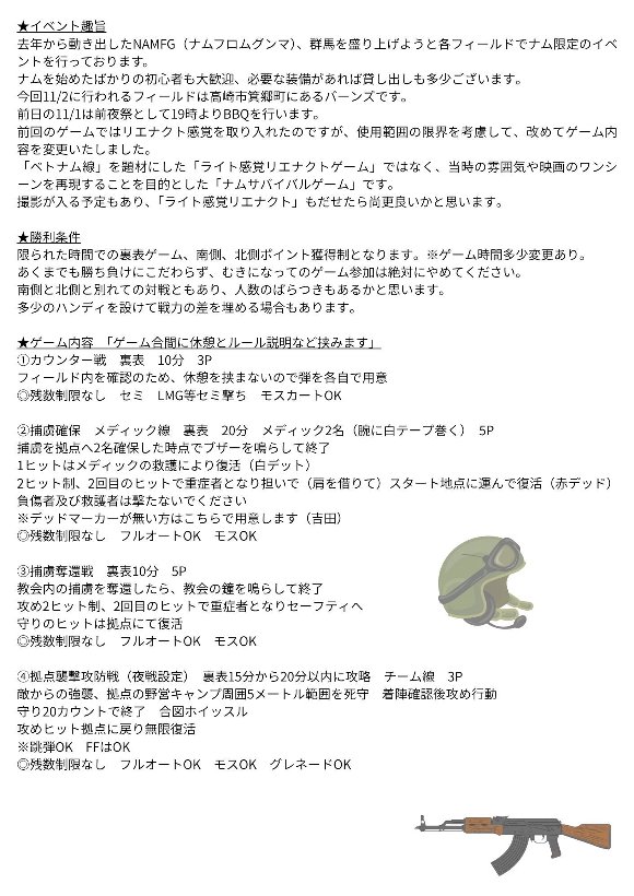 バーンズ高崎での ナム戦イベント NAMFG 開催を 知り 参加申し込み
