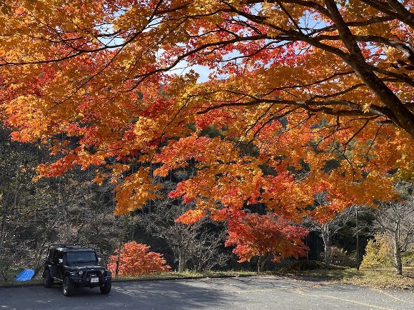 紅葉の林道を 気持ち良く 走り