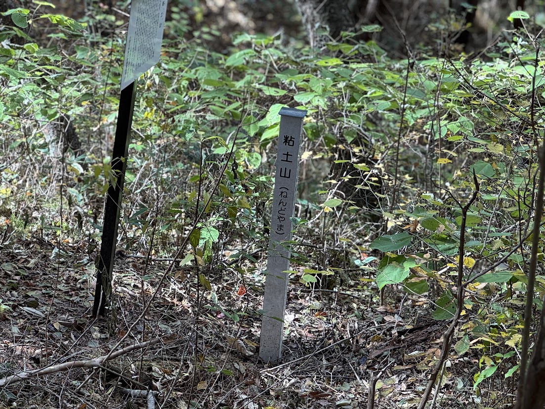 ![]() 山頂とは思えない 斜面に 粘土山 の表示 |
