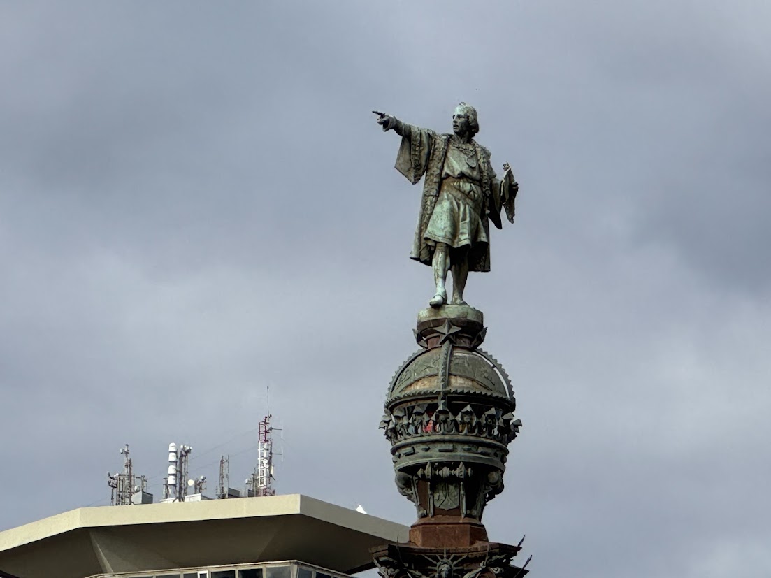 ![]() 港の 逆光の コロンブス像 |