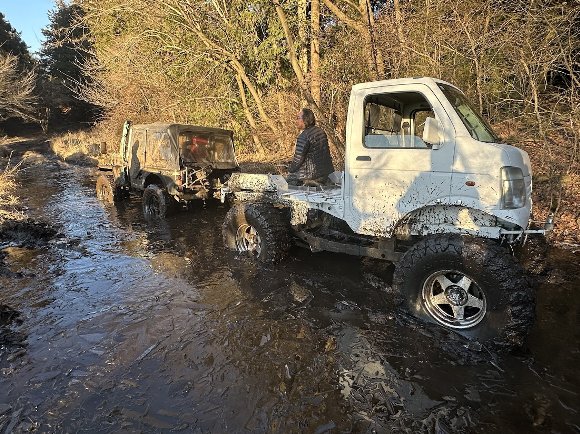 超改造 軽トラックが 沼地でスタック??