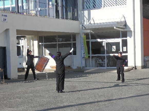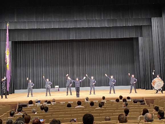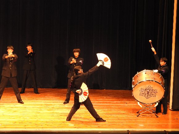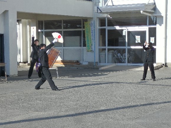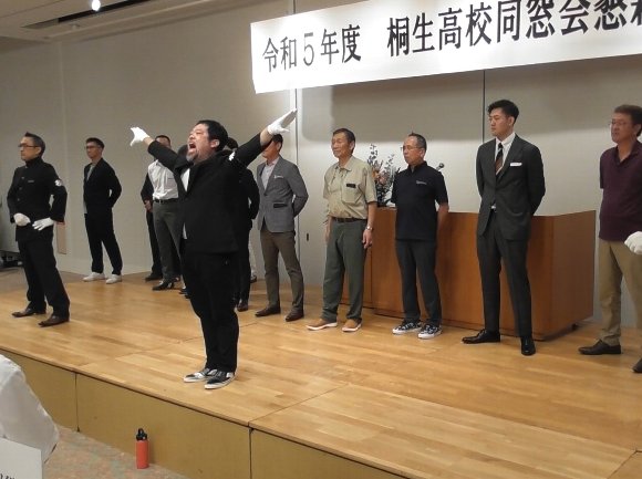 ![]() 同窓会総会前の 応援団 演技 |